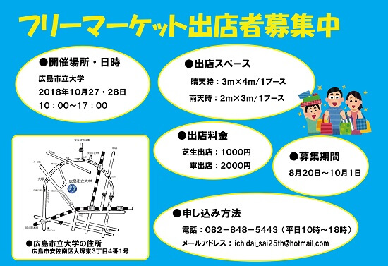 | 学内・リピーター出店者 | 芝生出店¥800 車出店¥1,600 |